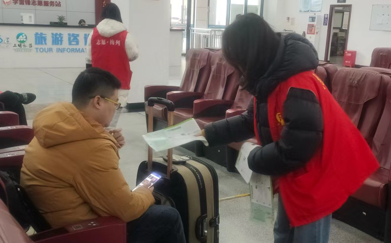 在三明汽車南站,黨員們分成多個(gè)小組開展服務(wù),在售票窗口開展便捷購票服務(wù),為旅客提供購票咨詢、乘車指引、自助售票機(jī)取票指導(dǎo);在候車室、車站前廣場開展行李幫運(yùn)、扶老攜幼、衛(wèi)生保潔;有的對老、弱、幼等特殊乘客提供急救藥品、免費(fèi)熱水;在候車室開展安全出行、文明乘車知識宣傳教育,發(fā)放交通安全宣傳單,引導(dǎo)旅客不乘坐非法營運(yùn)交通工具等志愿服務(wù)。
