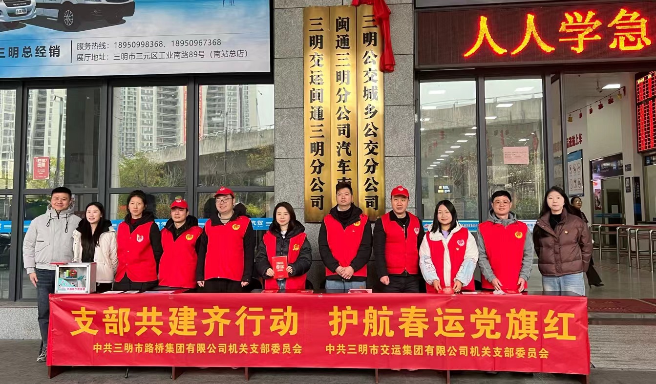 為深入貫徹落實(shí)習(xí)近平新時(shí)代中國特色社會(huì)主義思想,踐行社會(huì)主義核心價(jià)值觀,傳承“奉獻(xiàn)、友愛、互助、進(jìn)步”的志愿精神,1月26日,春運(yùn)的第一天,市路橋集團(tuán)機(jī)關(guān)黨支部與市交運(yùn)集團(tuán)機(jī)關(guān)黨支部一起到三明汽車南站為春運(yùn)期間旅客出行提供“便捷、舒適、可靠、安全”的志愿服務(wù),共建平安文明和諧春運(yùn),提升三明城市文明形象。