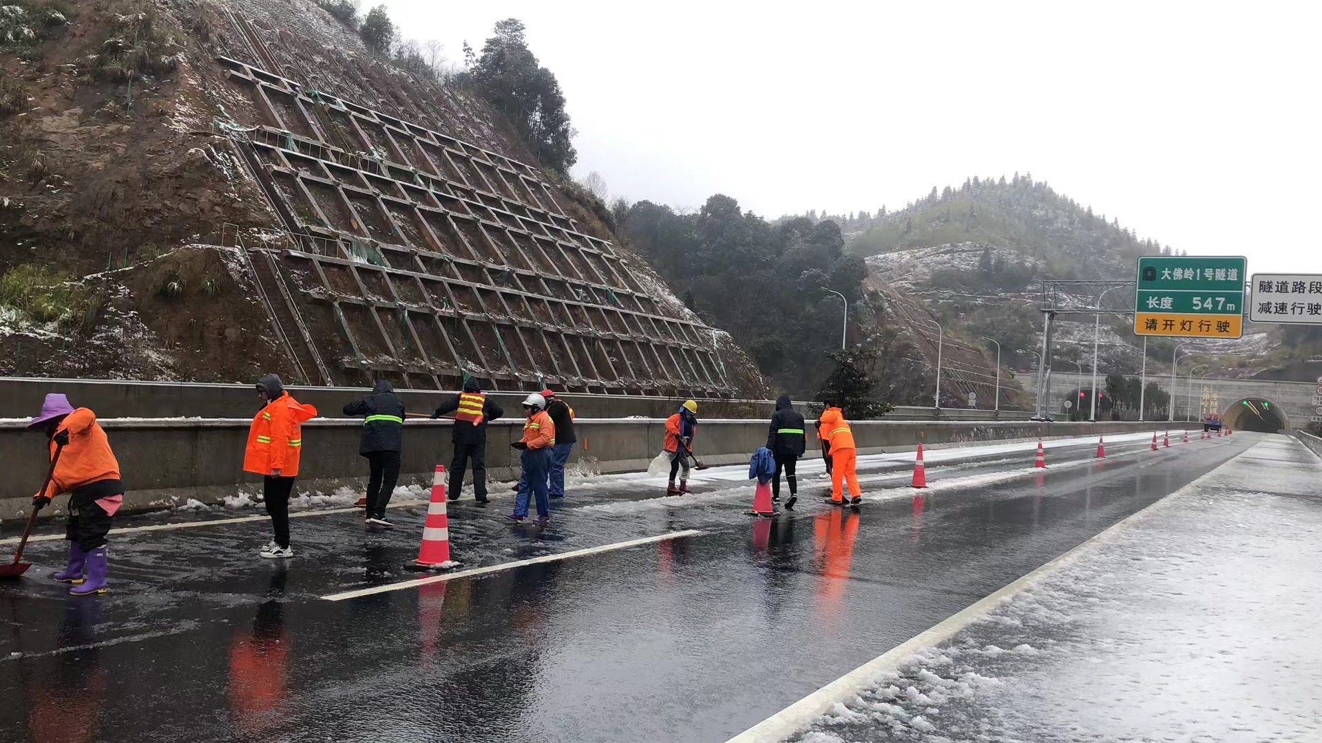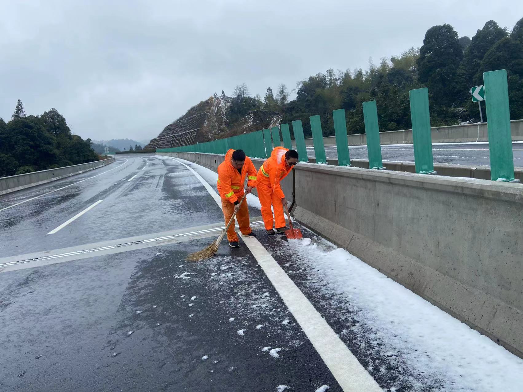 在保暢工作中,養(yǎng)護人員是抗冰除雪大軍中一面最亮眼的旗幟,他們與冰雪奮戰(zhàn),與時間賽跑,哪里有困難,他們就到哪里;盡管寒風(fēng)刺骨,汗水卻早已濕透了他們的衣衫,盡管腳穿雨靴,冰冷的雪水依然“侵蝕”著雙腳,但那一抹耀眼的橘色,儼然已成為高速路上最美的風(fēng)景。