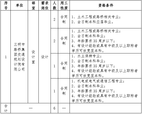 (二)報(bào)名。采取網(wǎng)絡(luò)報(bào)名方式,請(qǐng)應(yīng)聘者下載填寫《三明市路橋集團(tuán)有限公司公開(kāi)招聘工作人員報(bào)名登記表》(附件),投遞至郵箱smslqjt@163.com(文件命名為“姓名+應(yīng)聘崗位”)。報(bào)名截止時(shí)間為2022年4月8日。