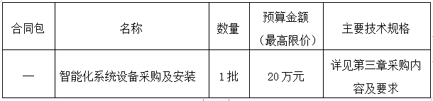 三明交發(fā)集團(tuán)高速公路養(yǎng)護(hù)基地智能化設(shè)備采購(gòu)及安裝工程已由有關(guān)部門批準(zhǔn)采購(gòu),采購(gòu)人為三明市路橋集團(tuán)物資貿(mào)易有限公司。項(xiàng)目已具備采購(gòu)條件,現(xiàn)對(duì)該項(xiàng)目進(jìn)行公開競(jìng)爭(zhēng)性談判。