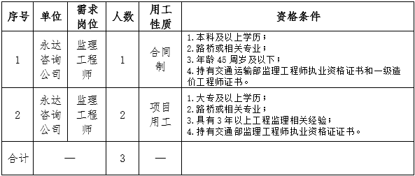 因工作需要,按照公開、公平、公正、競(jìng)爭(zhēng)擇優(yōu)的原則,面向社會(huì)公開招聘人員3人,其中合同制1名,項(xiàng)目用工2名,現(xiàn)將崗位招聘信息發(fā)布如下: