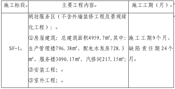 2.4遴選范圍和內(nèi)容:胡坊服務(wù)區(qū)房屋建筑、安裝工程和室外工程施工(不含外墻裝修工程及景觀綠化工程)。