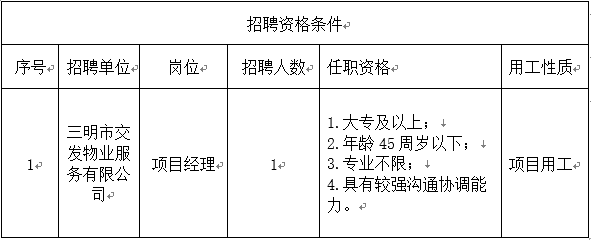 因工作需要,按照公開(kāi)、公平、公正、競(jìng)爭(zhēng)擇優(yōu)的原則,面向社會(huì)公開(kāi)招聘項(xiàng)目用工1名,現(xiàn)將崗位招聘信息發(fā)布如下: